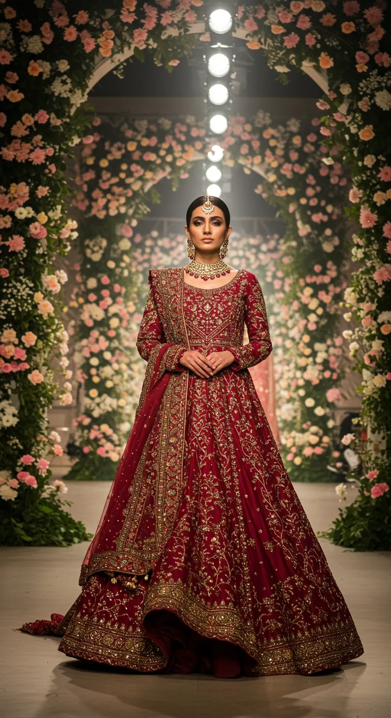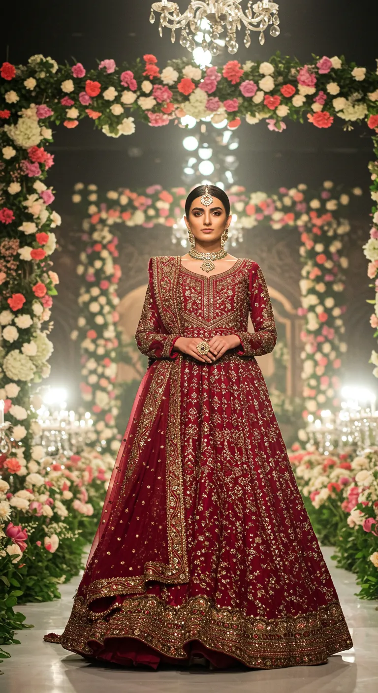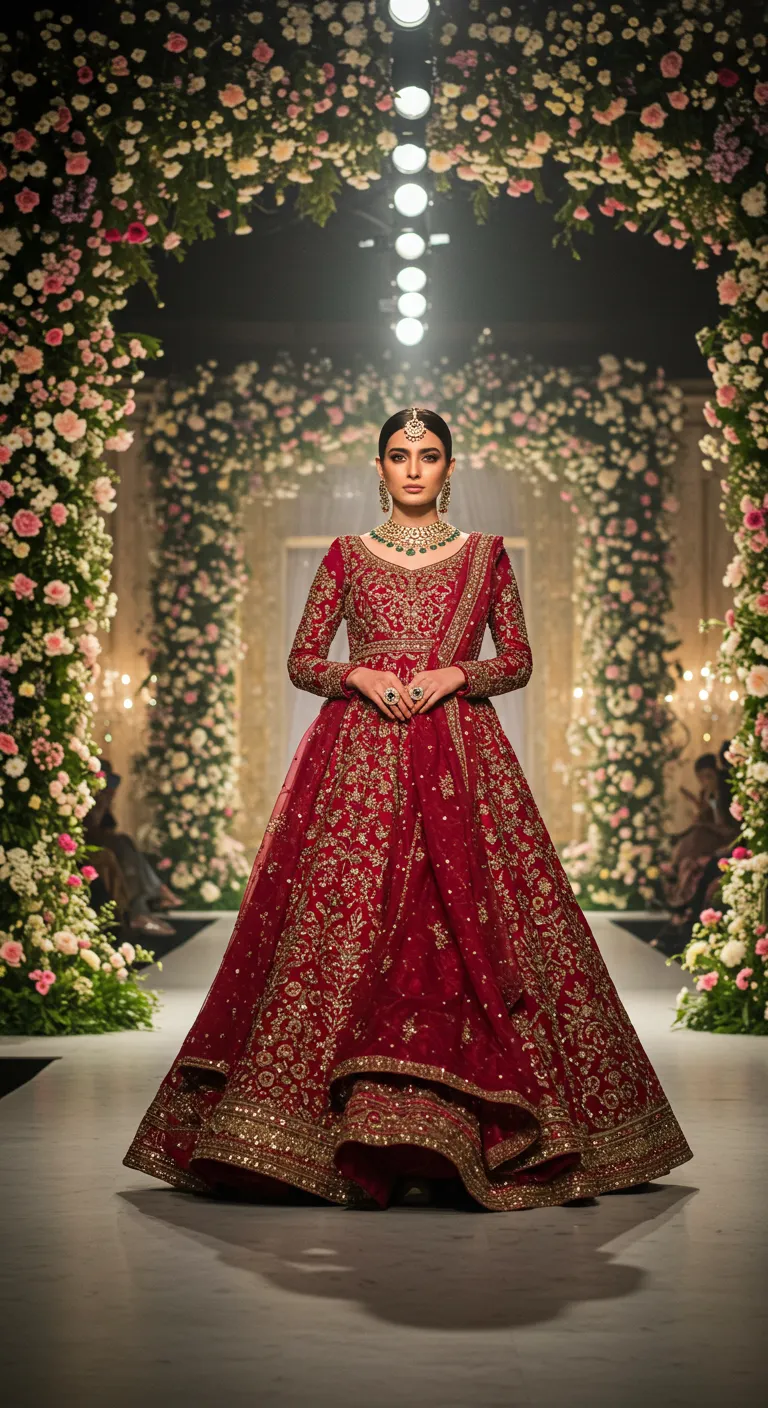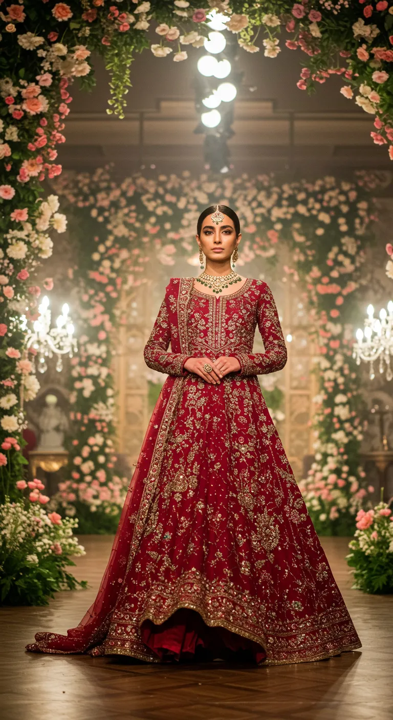“Crimson Aura” whispers passion through delicate naqshi threads and Swarovski blooms. Dawood Apparel redefines bridal grace with a bold yet feather-light touch, where tradition and couture elegance unite.