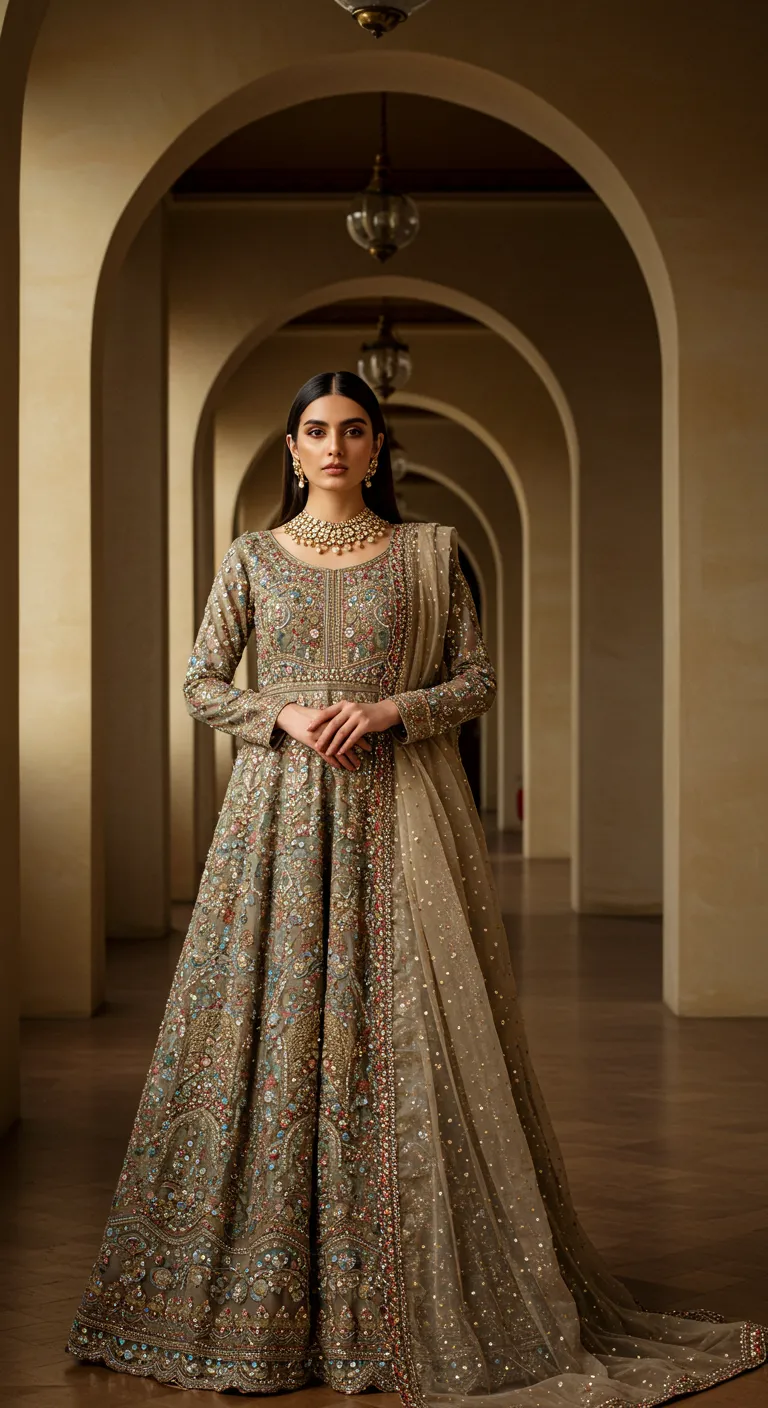 We arrange a consultation—either in person at our studio or online for out-of-town clients. In this session, we discuss your needs, style inspirations, and event details. You may share design sketches, reference images, or ideas from our collection. Many of our bridal orders are designed entirely from scratch.