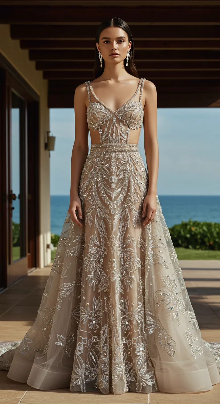 We arrange a consultation—either in person at our studio or online for out-of-town clients. In this session, we discuss your needs, style inspirations, and event details. You may share design sketches, reference images, or ideas from our collection. Many of our bridal orders are designed entirely from scratch.